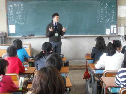 今年も英語活動にALTの先生が来られました。アメリカ合衆国のオハイオ州出身の ジン・タイ・リャウ先生です。今日が初めての授業日です。みんな,頑張って学習しましょう。
