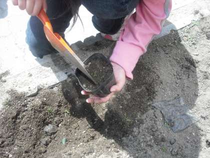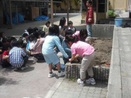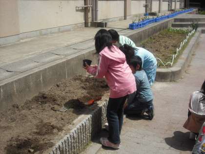 「生き物を調べよう」の学習で,ツルレイシの種を植えます。夏に実がなり,熟して種ができるまで,ずっと観察します。絵や文章で成長の様子を記録します。