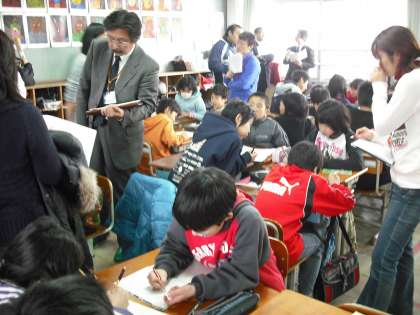 北上支部 社会科主任研修会で授業を参観していただきました。今日は沖縄の家のつくりなどの資料をもとに,気候に適した暮らしについて考えました。授業の最後には,沖縄県出身の本校の職員の方から話を聞きました。