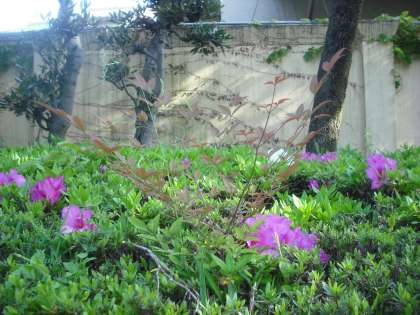 ツツジの植込みに南天が自生しています。誰も植えてはいません。これは,鳥たちが南天の赤い実を食べ,フンに混じった種が落され,それが発芽したものです。植物はいろいろな形で増えていきますね。2年生では,国語の時間に「たんぽぽのちえ」を学習します。どのようにしてたんぽぽが増えていくのかわかります。植物によって違います。調べてみると楽しいですね。