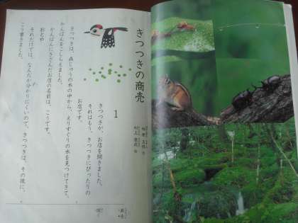 「きつつきの商売」の音読をしています。グループで友達の音読を聞き合っています。
