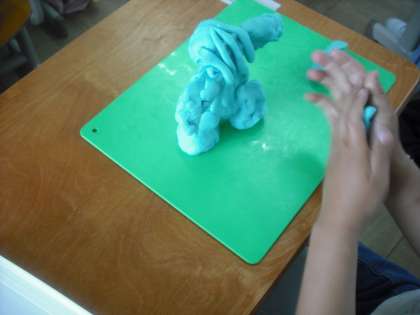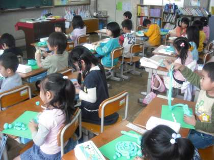 今日は,エコねんどを使って自由に形を作りました。ちっぎって,のばして,くっつけて…。楽しい作品が出来上がりました。これから,いっぱいいろいろなものを作ります。