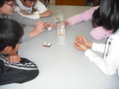 今日は物の燃焼と空気の関係を調べる学習です。子どもたちは実験が大好きです。線香の煙を使って空気の流れを確かめ,物の燃焼と空気の関係について調べています。日常生活の中でもたくさん見つけられます。理科の時間に学習したことを生かすようにしましょう。