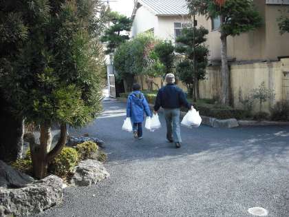 今月からは4年生も参加しました。ボランティアさんたちと,地域のお年寄りの方々にお弁当を持っていきます。