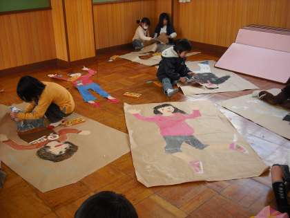 来週に開かれる「図工展」に向けて,作品がだんだんと仕上がってきています。等身大の自分の姿が体育館に掲げられます。出来上がりが楽しみですね。
