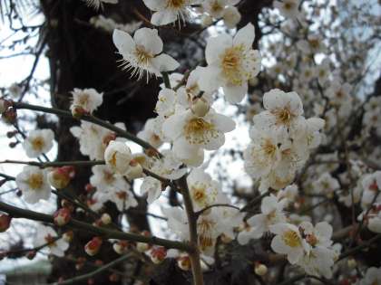 運動場の西側の植込みにある「白梅」が暖かくなって一気に咲き始めました。金曜日まではつぼみだったので,急に咲いてびっくりしています。まだまだつぼみもたくさんついています。今週末には満開を迎えるのではないでしょうか。
