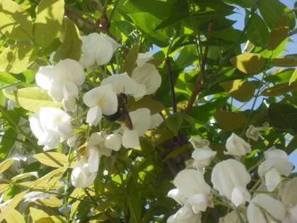 クマバチが藤の花の蜜を吸いにきています。
