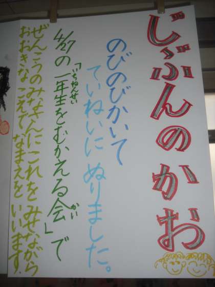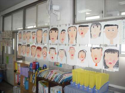 「自分の顔」を描きました。4月27日に,児童会主催で行なう「1年生をむかえる会」で,これをもって自己紹介をします。保護者の皆様もお越しいただきご覧ください。