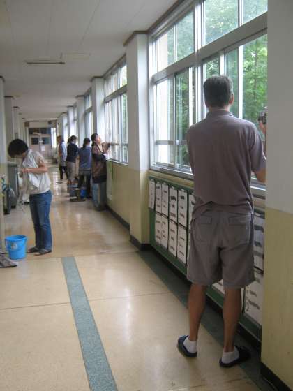 今日から学校が始まり,全校朝会の後に「たてわりクリーン大作戦」が行われました。普段子どもたちの手の届かない所や,校庭の草抜きなどむし暑い中,保護者の方々に清掃していただきました。もちろん,子どもたちもたてわりグループに分かれて,それぞれの持ち場をしっかり掃除することができました。とてもきれいになり,気持ちよくなりました。ご参加いただいた保護者の皆様にはお忙しいところありがとうございました。今後ともよろしくお願いいたします。