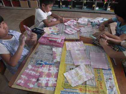 先週,お世話を続けてきた朝顔の花をつかって和紙を染めました。
