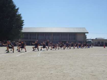 仲よし,1年生,2年生の団体演技,キッズソーランの様子です。