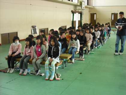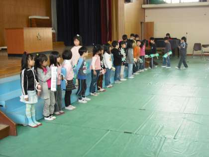 22年度の入学式に備えて,「お迎えの言葉」の練習をしています。新1年生に学校の様子を話したり,歓迎の歌や演奏の練習です。入学してから1年がたとうとしていますが,しっかり成長した姿を見せています。