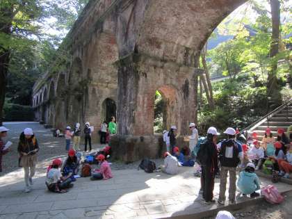 琵琶湖疏水が,南禅寺の水路閣の上を通っています。水路閣の大きさやデザインに,みんな驚いていました。
