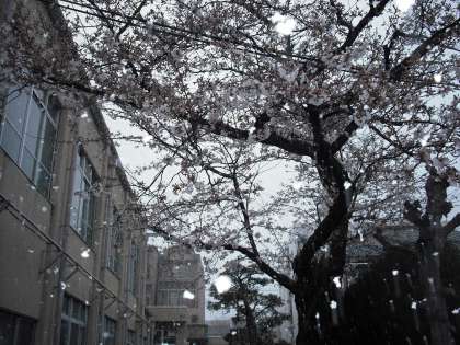 3月末には大変めずらしい雪。桜の花と幸のマッチングはいかがでしょうか?