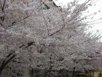 中庭と紫竹通りに面したソメイヨシノの様子です。咲くのが早かったため散りだすのも早いかもしれませんね。