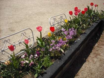「チューリップやパンジーがいっぱい」