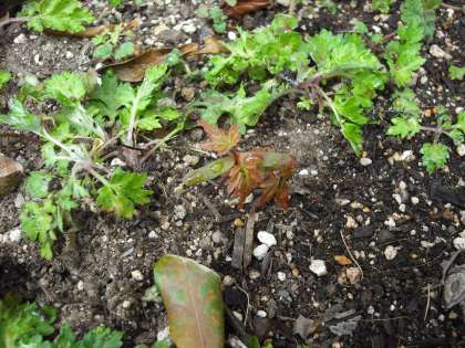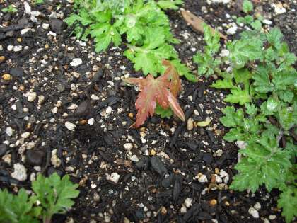 もみじの小さな苗が発芽しました。モミジは発芽しやすく,今年はたくさん出てきています。