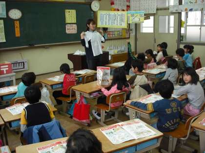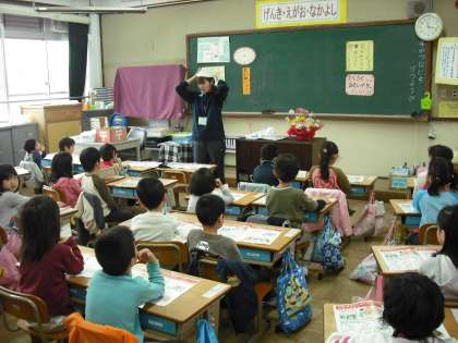今日から給食です。給食をまえに,準備の仕方について勉強しています。