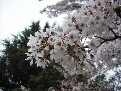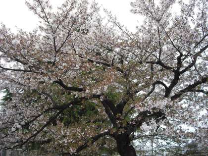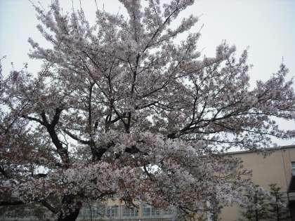 おはようございます。4月15日の桜の様子です。ソメイヨシノは木の上の法が咲くのが遅かったため,今も花が残っています。