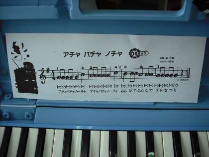 2年生になって「鍵盤ハーモニカ」も上手に吹けるようになっています。今日は「アチャ パチャ ノチャ」の練習をしました。