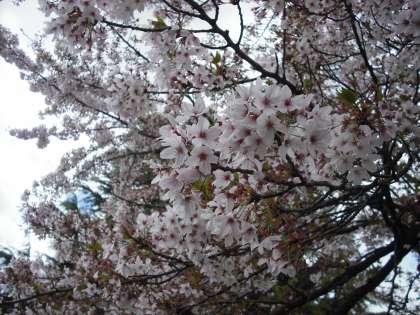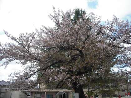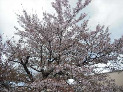 4月17日の桜の様子です。昨日の雨で,花びらが散ってきていますが,寒さのせいか思ったより長く続いています。