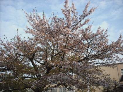 おはようございます。4月19日のソメイヨシノの様子です。そろそろ,ソメイヨシノも終わりに近づいてきました。