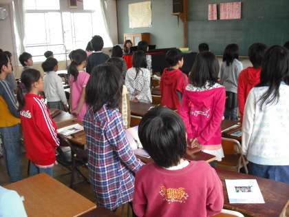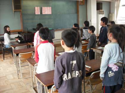 音楽の時間,まずはじめに歌を歌います。みんな姿勢よく,大きな口をあけて,大きな声で元気よく歌っています。