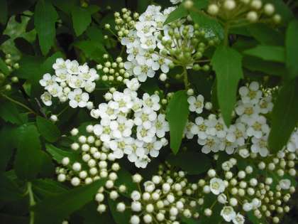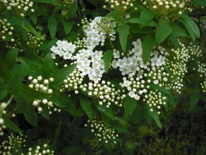 コデマリのつぼみ全体が白くなってきました。花もいくつか咲きはじめています。