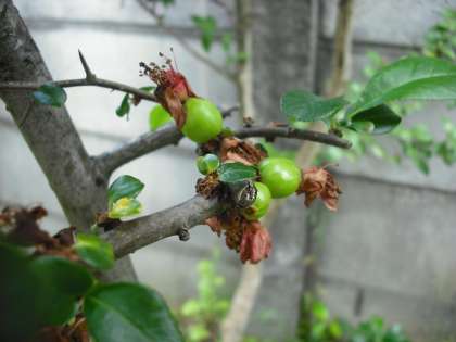 久しぶりの「これはなあに?」ですが,ボケの花が終わった後,花の根元が膨らんできています。これからどんどんと成長して,ゴルフボールくらいの実をつけます。この実はいろいろと使い道があります。どんな使い道があるか調べてみるのも楽しいですね。