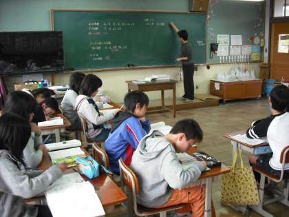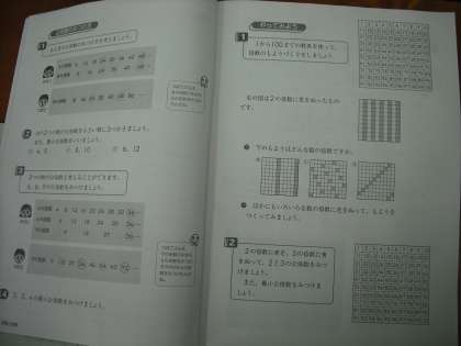 新学習指導要領の移行措置で6年生の学習から5年生に降りてきた学習です。整数を倍数・約数という観点を決めて分類・考察し,整数の性質について考えられるようにする学習です。補助教材を使って学習しています。