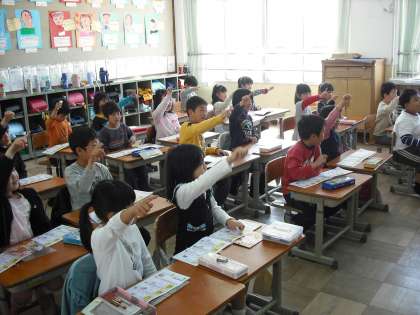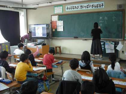 今日は「教」の漢字の勉強です。2年生になって漢字も画数が多くなり,たくさん覚えなければなりません。デジタルテレビとコンピュータをつなげて,書き順の勉強をしています。また,「教」のつく言葉集めもしました。