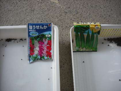 植物の成長の過程や体のつくりを観察し,その特徴や共通点をとらえ,植物の育つ順序や植物に共通して見られる根・茎・葉という体のつくりについての考えをもつように学習します。今日はオクラとホウセンカの種をまきました。これからどう育つかな。しっかり観察しましょう。