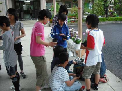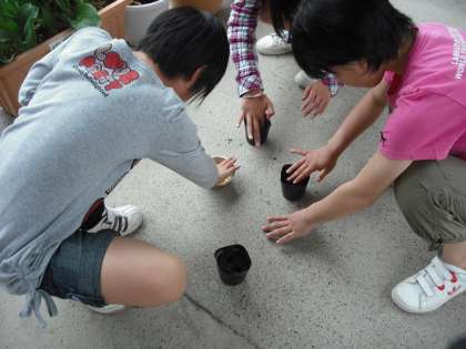 5年生は,総合的な学習で環境について学習していきます。その一環として,大豆を育て,みそ作りにまで挑戦します。今日は種を植えtました。