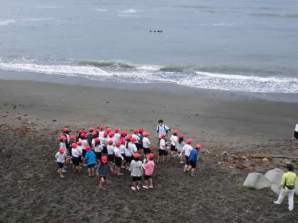 雨がやんだので大野浜へ砂の造形に出かけました。