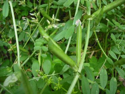 花が終わった後,カラスノエンドウの実ができてきました。昔は,さやから豆を取り除き,笛のようにして吹いて遊んでいましたが,今はどうでしょうか?