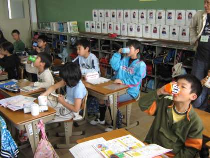 今日から,今年度のフッ化物洗口が始まりました。右・左・真ん中とそれぞれ20ずつ数えてブクブクします。毎日の歯みがきと合わせて,虫歯予防を心がけましょう。
