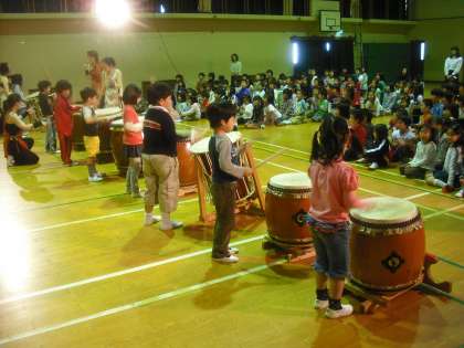 ワークショップがあり,みんな和太鼓をたたかせてもらいました。