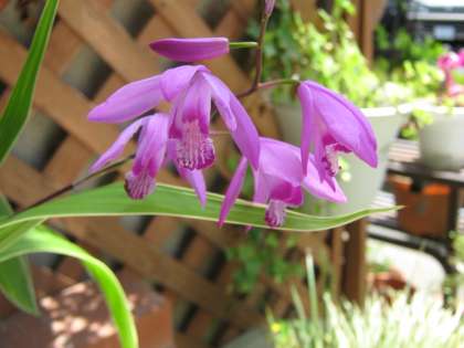 紫蘭の花が清楚に咲いています。