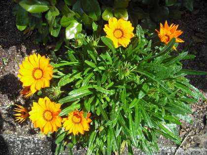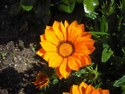 ガザニアのオレンジの花が咲きだしました。ガザニア は,キク科クンショウギク(ガザニア)属の総称です。名前は,アリストテレスなどのギリシャの古典書物をラテン語に翻訳したギリシャ人「ガザ」の名前に由来するそうです。