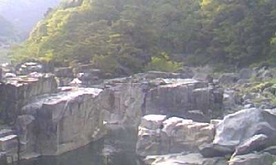 寝覚の床に到着しました。木曽川の渓流に,巨大な花崗岩が連なる自然の造形に圧倒されました。