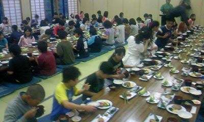 ねざめホテルに到着し,入館式をしたあと夕食です。みんな一緒にワイワイと食べる夕食はおいしいです。夕食のあと,明日見学する中山道や木曾の話を,地元の方からお聞きします。そのあと入浴・就寝という予定です。