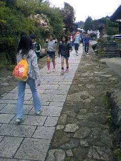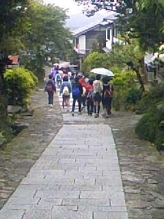 次の見学地「馬籠宿」に到着しました。一里塚や芭蕉・子規の句碑,藤村の記念館などがあり,木曽路では妻籠宿とともに有名な宿場です。江戸時代にタイムスリップした気分で歩いています。