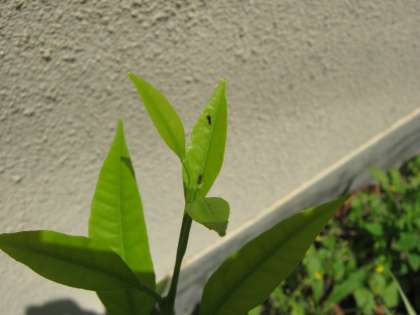 生まれてすぐのアゲハの幼虫です。アゲハはみかんの木の若葉に卵を産みつけますが,若葉をしっかり見分けているのですね。