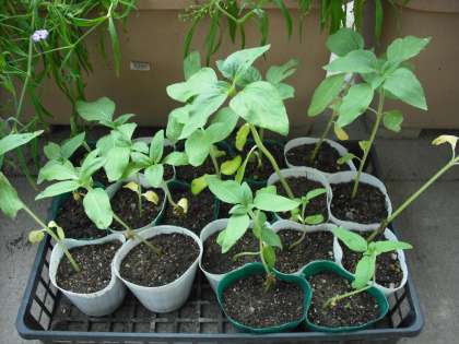 去年のロシアヒマワリのこぼれ種から発芽したものです。花壇に植えかえをします。