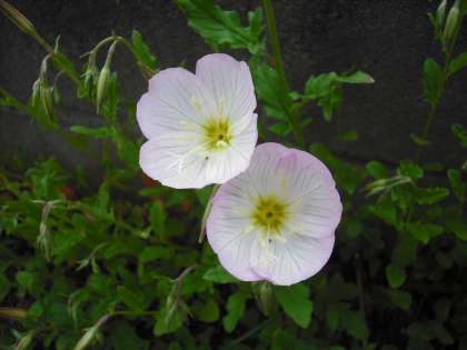 こぼれ種から今年も咲きました。マツヨイグサ(待宵草)と同属ですが,昼間開花するのでこの名があります。つぼみもたくさんついています。これからしばらく楽しめます。