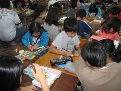 3年生は,親子で作って遊べる工作に挑戦です。工作用紙をきちんと切ったり,穴の位置をまちがえずに開けたりと,親子で協力して作りました。