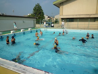準備ができたところで,プールで遊びました。昼間はとても暑かったので,気持ちがいいです。