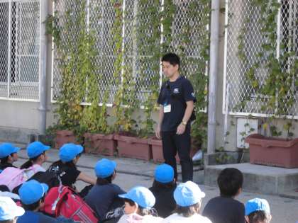 秋晴れのもと、子どもたちは山の家に向けて元気に出発しました。
