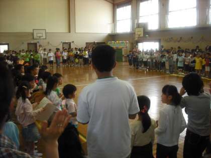 第2部は鳳徳小学校のお友だちとの「みんなよろしく大会」です。秋に「北上支部育成学級合同運動会」が鳳徳小学校で行われます。今日は,第1回目の交流です。一人一人が紹介されました。