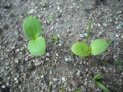 理科の時間に種をまいた,オクラとホウセンカがやっと芽を出しました。3年生のみんなは,芽が出るのが遅いので心配していましたが,これで大丈夫ですね。